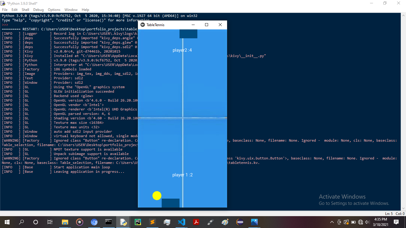 A table tennis game made using Kivy , a python UI library