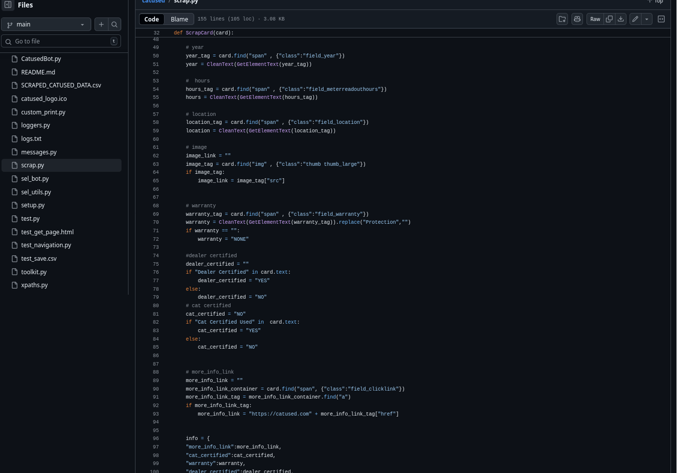 A bot that scrapes equipment data from Catused website and saves it to CSV files .