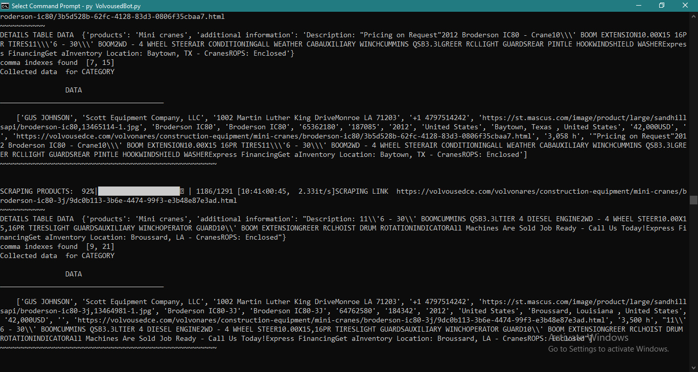 A command line based bot that scrapes equipment data from the the volvoused website and saves it in CSV files